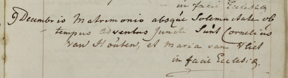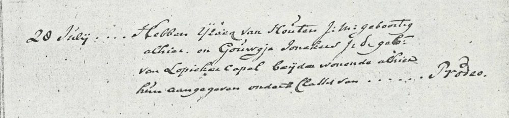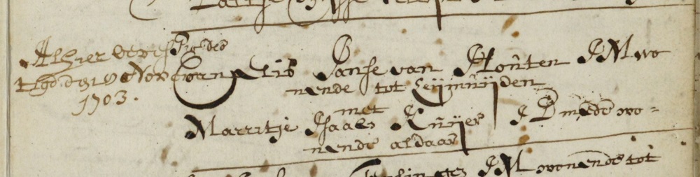 Getrouwd 18-11-1703 Leimuiden met Maria Isaacksdochter Kuijer