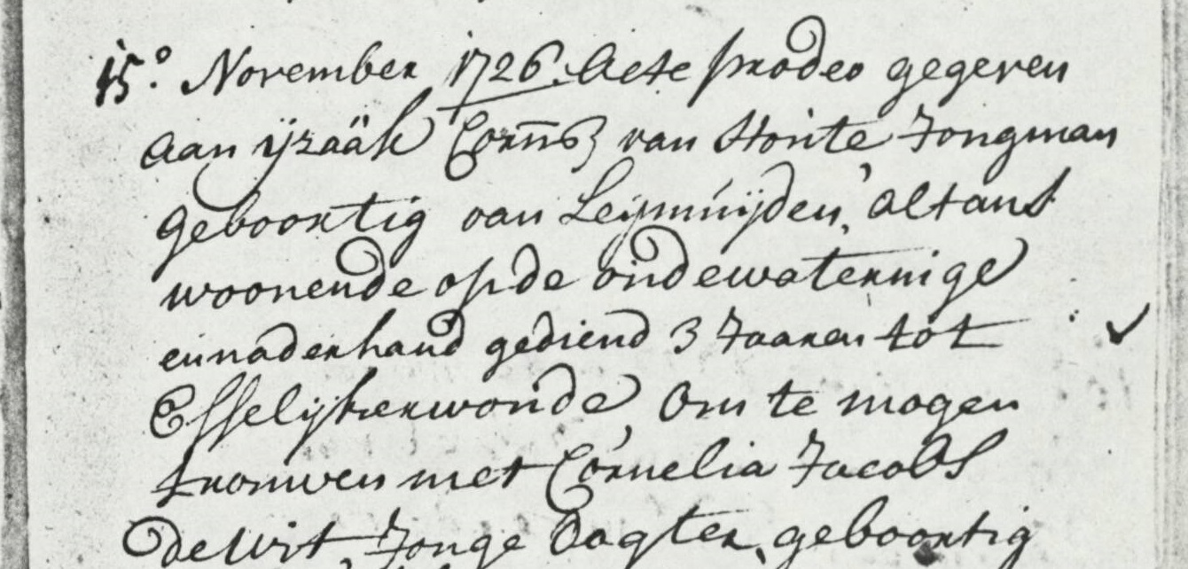Getrouwd 15-11-1726 Alkemade met Cornelia Jacobsdochter de Wit