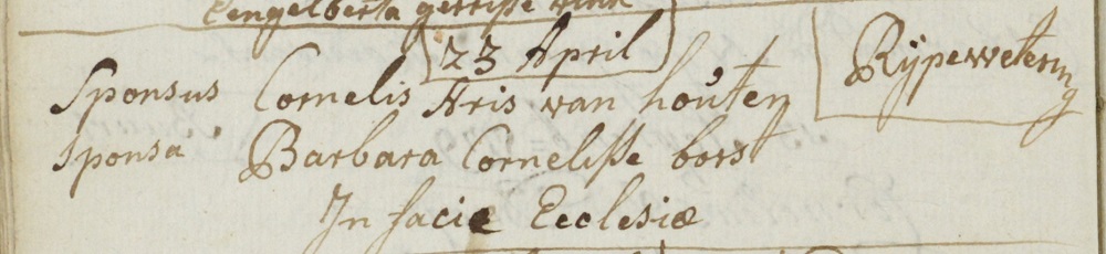 1690 - Trouwen Hermanus Pietersz. van Houten en Martijntje Jacobsdr. van IJperen