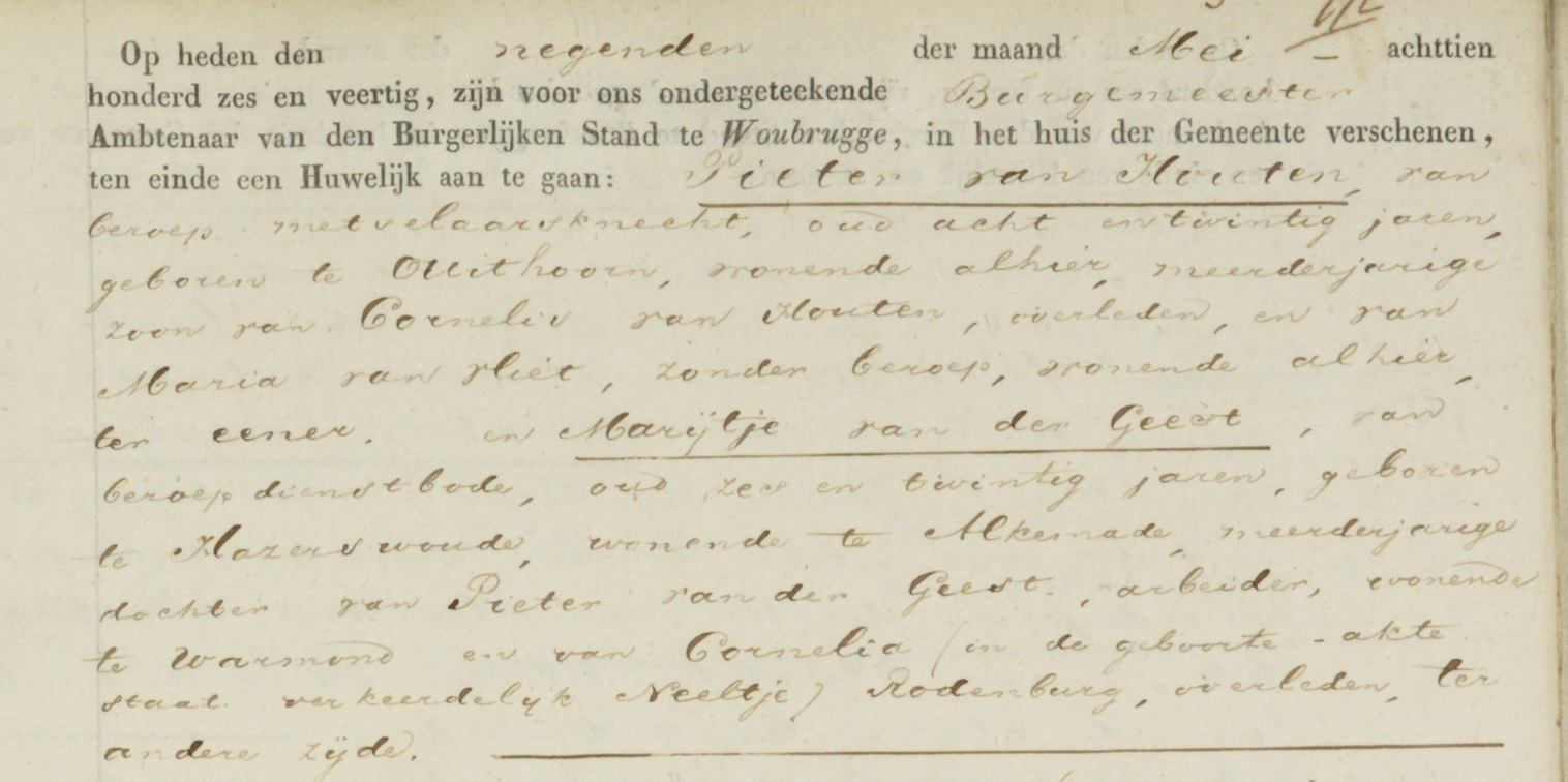 Maria Pietersdochter Hoosbeek, dochter van Pieter Pieterszoon Hoosbeek en Geertie Arisdochter Crul