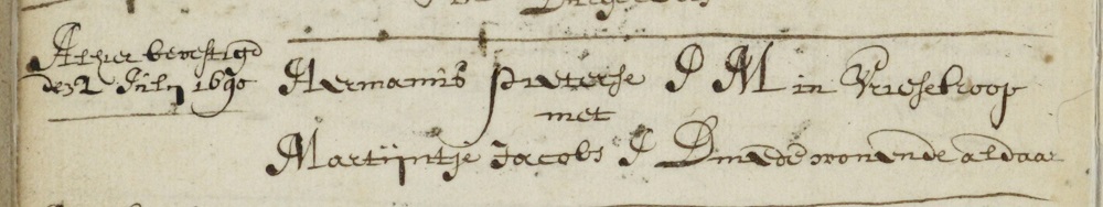 1690 - Trouwen Hermanus Pietersz. van Houten en Martijntje Jacobsdr. van IJperen
