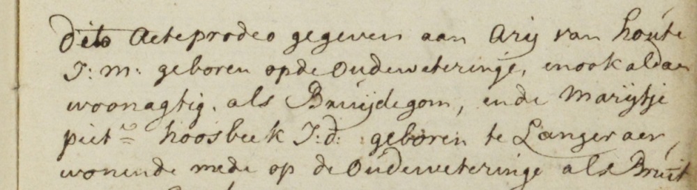 Getrouwd 18-11-1703 Leimuiden met Maria Isaacksdochter Kuijer